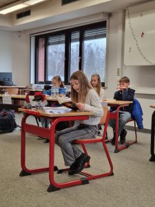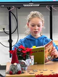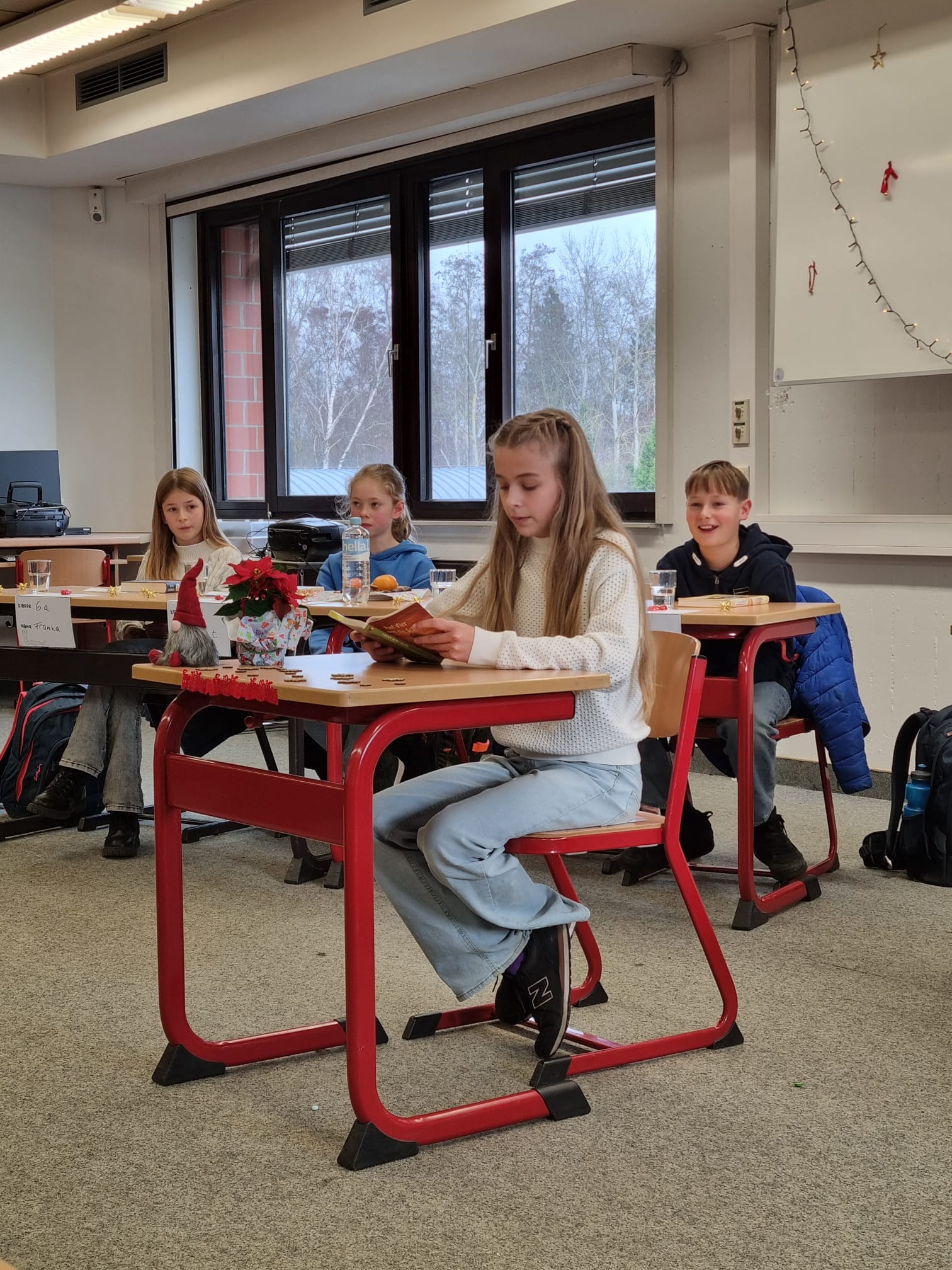 Am Donnerstag, den 11. Dezember 2025, fand an unserer Schule der Schulentscheid des Vorlesewettbewerbs der 6. Klassen statt. In vorweihnachtlicher Atmosphäre präsentierten die acht Klassensiegerinnen und -sieger ihre vorbereiteten Texte – von spannenden Abenteuern bis zu Fantasy-Geschichten. Besonders anspruchsvoll war der unbekannte Text, den die Teilnehmer in der zweiten Runde vorlesen mussten.