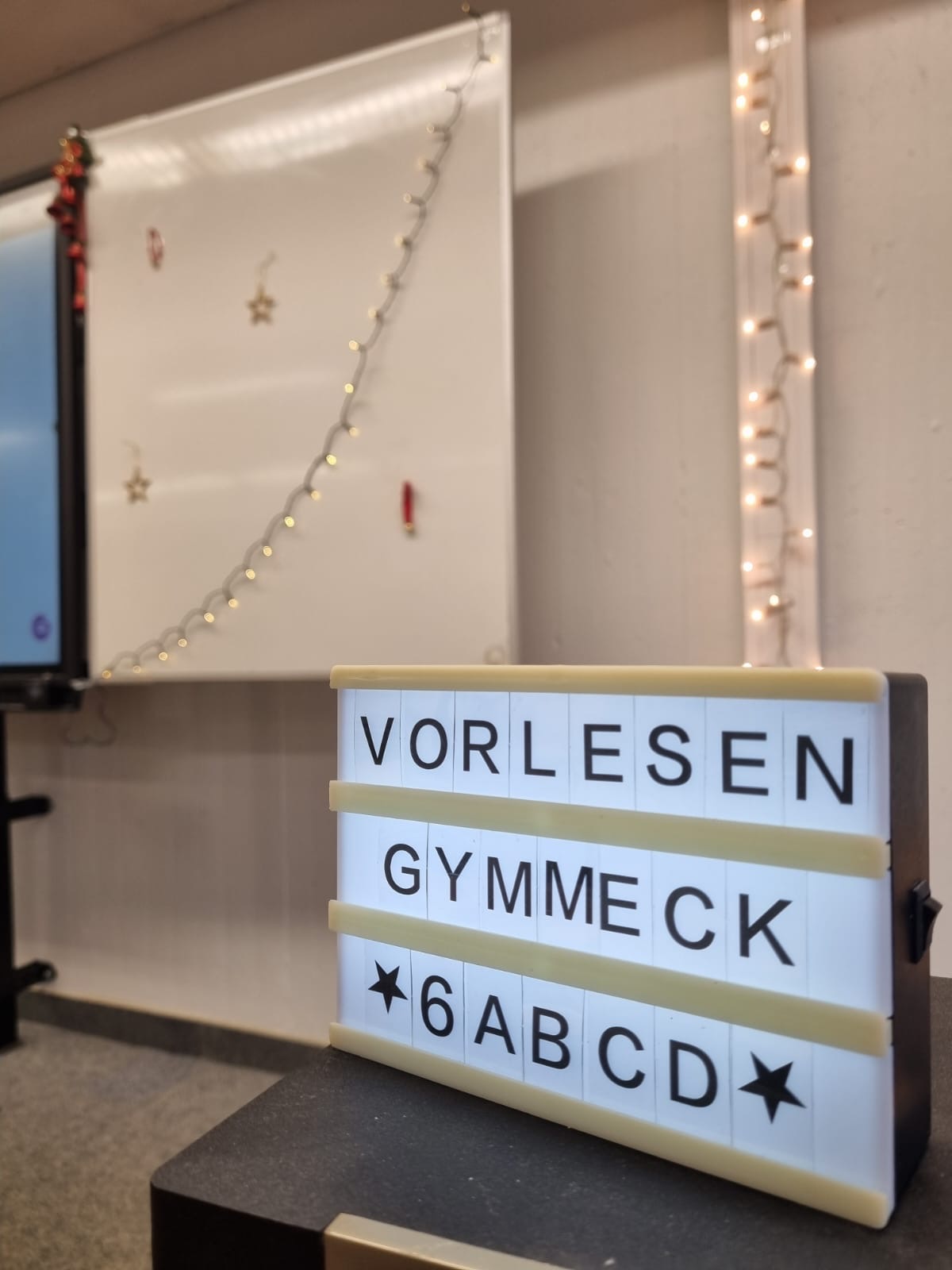 Insgesamt punktete eine Schülerin aus der Klasse 6a sowohl bei dem geübten wie auch bei dem ungeübten Text und wurde zur Schulsiegerin gekürt. Herzlichen Glückwunsch! Sie wird das GymMeck beim Kreisentscheid im Februar 2026 vertreten. Wir wünschen ihr dafür schon jetzt viel Erfolg und drücken die Daumen!